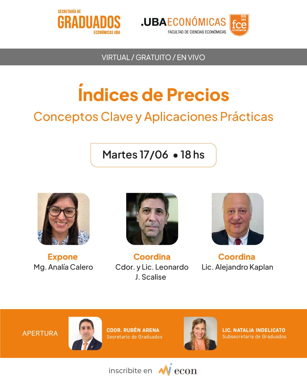 Nota: estas notas están escritas en masculino por una simple razón: rapidez en su escritura y lectura, pero entiéndase que en todo momento abarcan ambos géneros. Junio´25: Seguimos...como siempre: • Lo relevante: El próximo Martes 17 de JUNIO 18hs. haremos en la Facultad de Cs.Es. UBA (único ámbito donde nos dejan llevar a cabo este tipo de eventos en pos de la profesión), una Conferencia sobre "ÍNDICES DE PRECIOS - Aspectos Clave y Aplicaciones Prácticas" (enlace en NOTAS a las Novedades N°58).