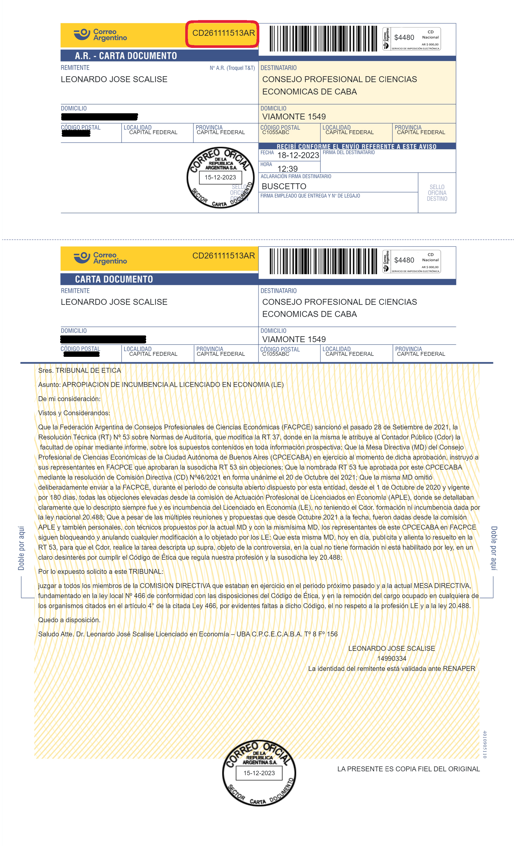 la comisión APLE al Consejo CABA por el RIGI–20Ago.2024 N°47 Flyer Día del Graduado Junio 2024 N°46 Carta Documento - Dic.2023 N°45