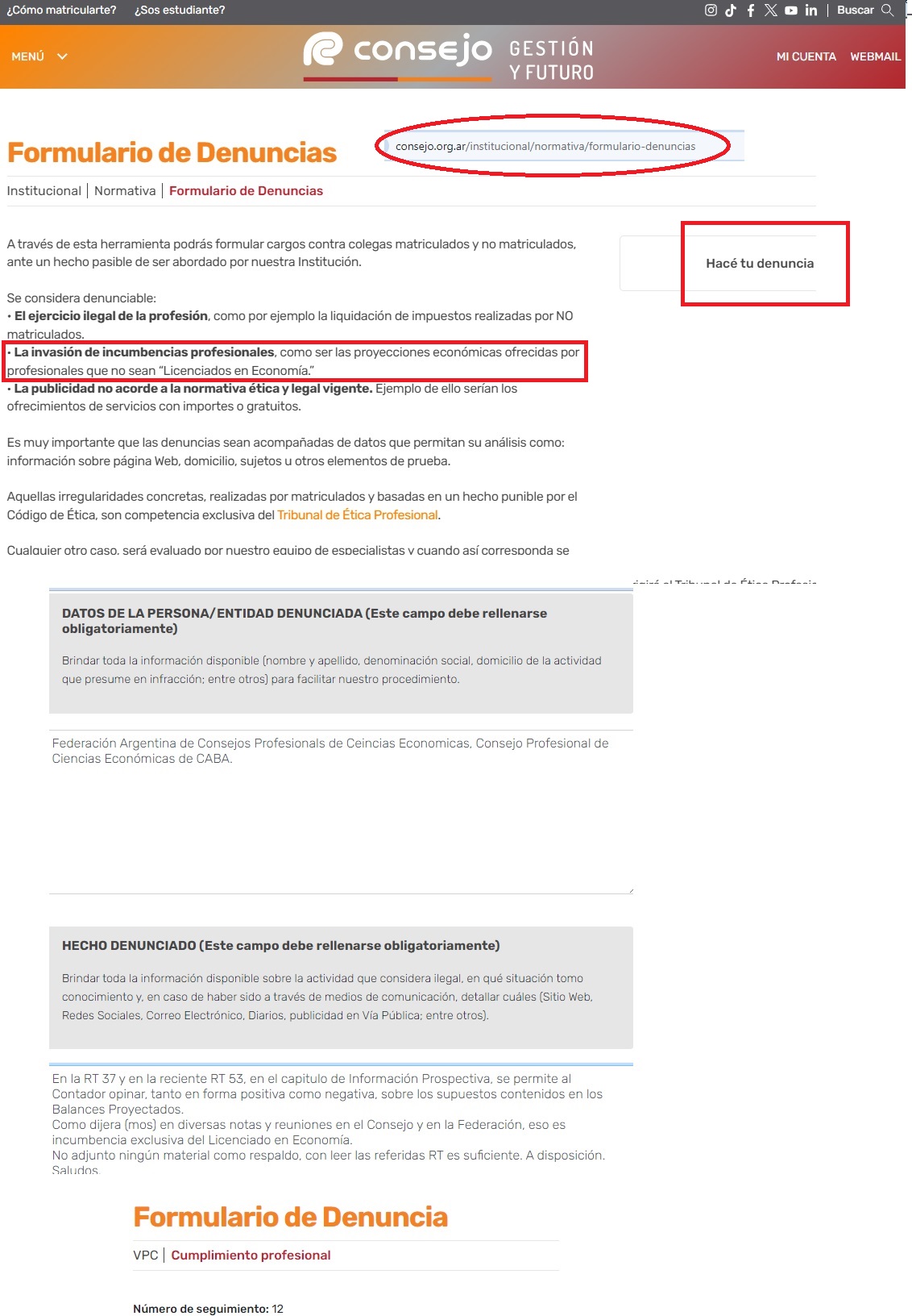 Formulario de Denuncias contra colegas matriculados o no–17Ago.2024 N°51 Gacetilla de Prensa de la