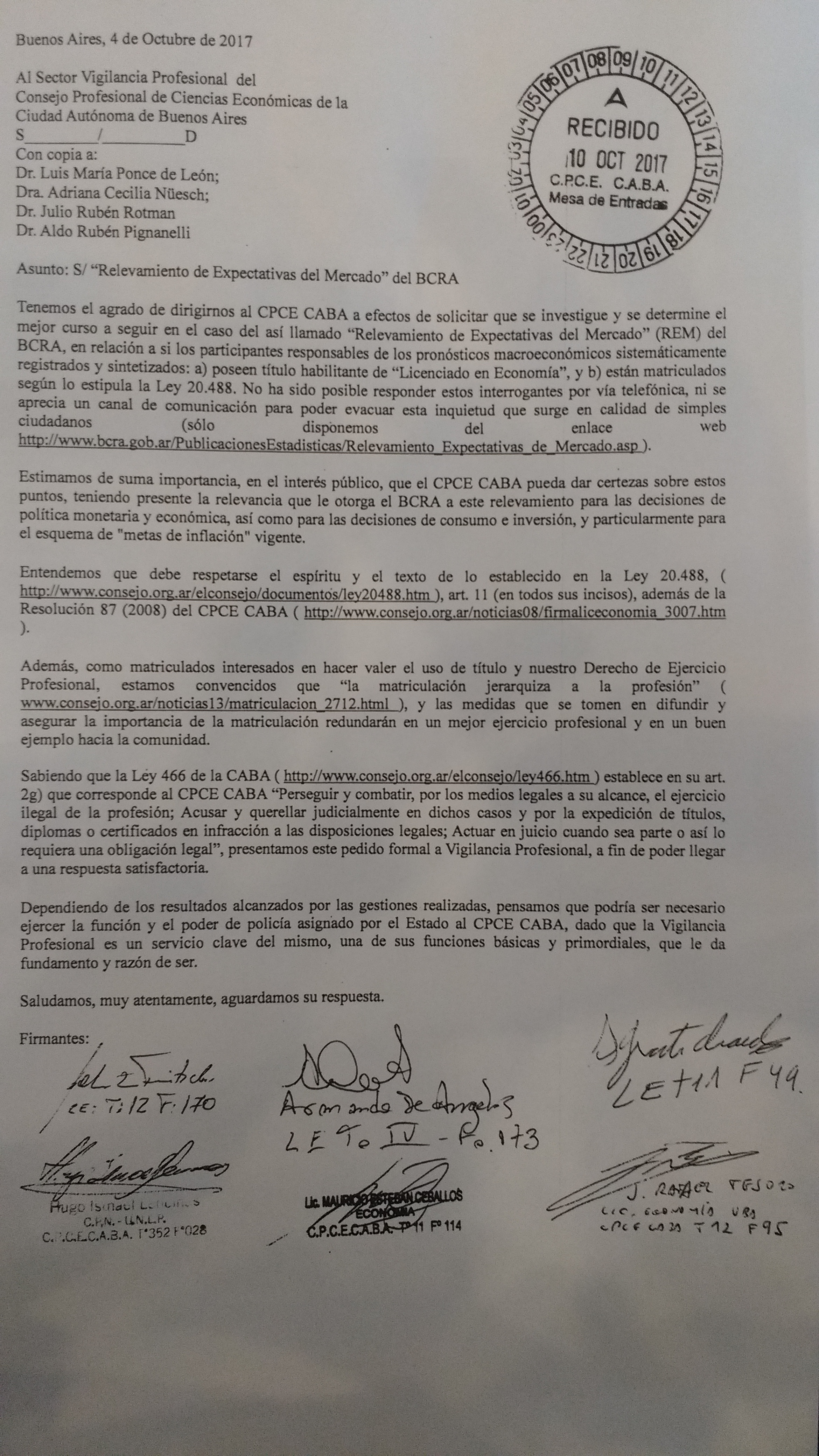 RESOLUCION 87/2008 sólo para CABA – Julio 2008 Nº4 Anexo Resolución 87/2008 sólo para CABA – Julio 2008 Nº3 Nota al BCRA – hoja 1- 5 Octubre 2012 Nº2 Nota al BCRA – hoja 2- 5 Octubre 2012 Nº1 Propuesta por Asoc.de San Luis por Sindicaturas LE – 9/Oct./2012 Nº-1 Prpta. Asoc.San Luis Sindicat.LE (version taquigraf.) – 9/Oct./2012 Nº-2 Nota a SENADORES por Sind.Societaria – 2/Julio/2012 Nº-3 Nota a DIPUTADOS por Sind.Societaria – 2/Julio/2012 Nº-4 Nota pidiendo informe Grado de Cumplimiento R87– 23/Mayo/2011 Nº-5 Nota pidiendo informe Porque No se exige Informe de LE–23/Mayo/2011 Nº-6 ¡¡Contestación de la Gerencia del Consejo!! a las Notas -4 y -5–15/Junio/2011 Nº-7 Nota pidiendo intervención el Comité de Vigilancia Prof.-23/Mayo/2011 Nº-8 Nota pidiendo incorporar calculador de Honorarios Mínimos de LE–23/Mayo/2011 Nº-9 Nota pidiendo incorporar recordatorio en pagina WEB –23/Mayo/2011 Nº-10 CODIGO DE ETICA + PROCEDIMIENTO DISCIPLINARIO Nº-11 Mail a Senadores por Sindicatura Concursal –30/Oct./2018 Nº-12 Publicación “Contabilidad y Auditoría” Nº 29 – año 15 : ACTUACIÓN DE CONTADORES PÚBLICOS Y LICENCIADOS EN ECONOMÍA EN LOS ESTADOS CONTABLES PROYECTADOS - Junio 2009 Nº-13 La Enseñanza de Economía en ARGENTINA, Guillermo Rozenwurcel, Gabriel Bezchinsky y Marisol Rodríguez Chatruc, Abril 2009 Nº-14 PETITORIO al Consejo de la UBA - Junio 2011 Nº-15 Resolución de SAN LUIS para firma LE - Mayo 2010 Nº-16 Carta A CONSEJO por propuesta en Bases Presupuestarias con firma LE y SINDICATURA SOCIETARIA para TODAS las profesiones de C.Es. - Mayo 2014 Nº-17 Carta a DIPUTADOS por propuesta en Bases Presupuestarias con firma LE y SINDICATURA SOCIETARIA para TODAS las profesiones de C.Es. - Mayo 2014 - Mayo 2014 |