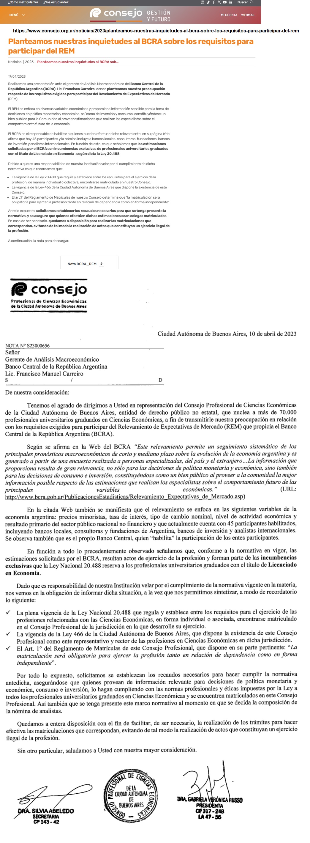 Consejo al BCRA por REM– 10/Abr.2023 N°39 Enlace